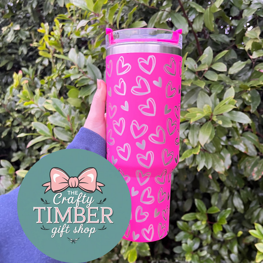 40oz Hearts Tumbler with Handle - Valentine's Day Stanley Dupe Tumbler- Laser Engraved Tumbler With Handle