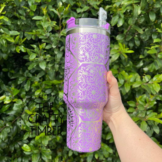 40oz Hidden Swear Word Tumbler With Handle - Mandala Tumbler - Cuss Word Tumbler - Laser Engraved Tumbler